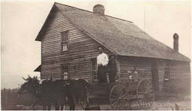 William Ruesch Jr. on LDS Mission in South Carolina, Standing in a wagon by a wood house.